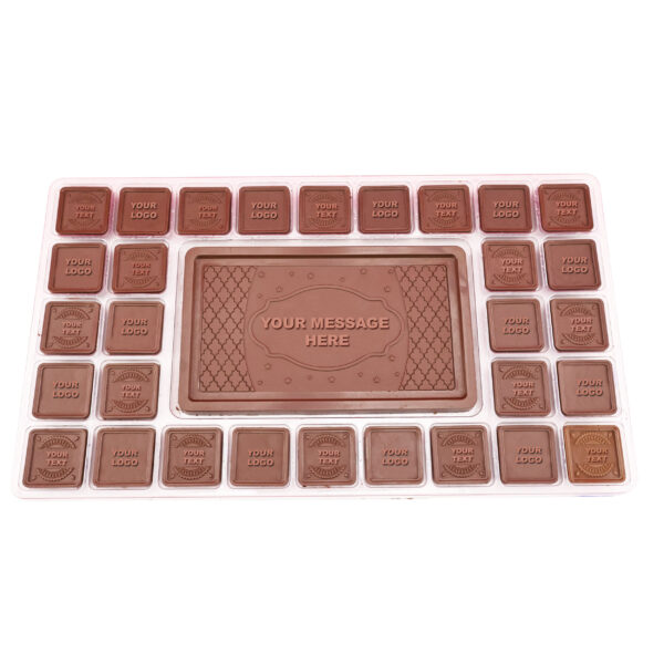 - 30 Designer Square Shape Chocolate: 35x35x5 mm, 7 gm each.